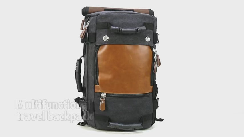 This backpack has many independent compartments.